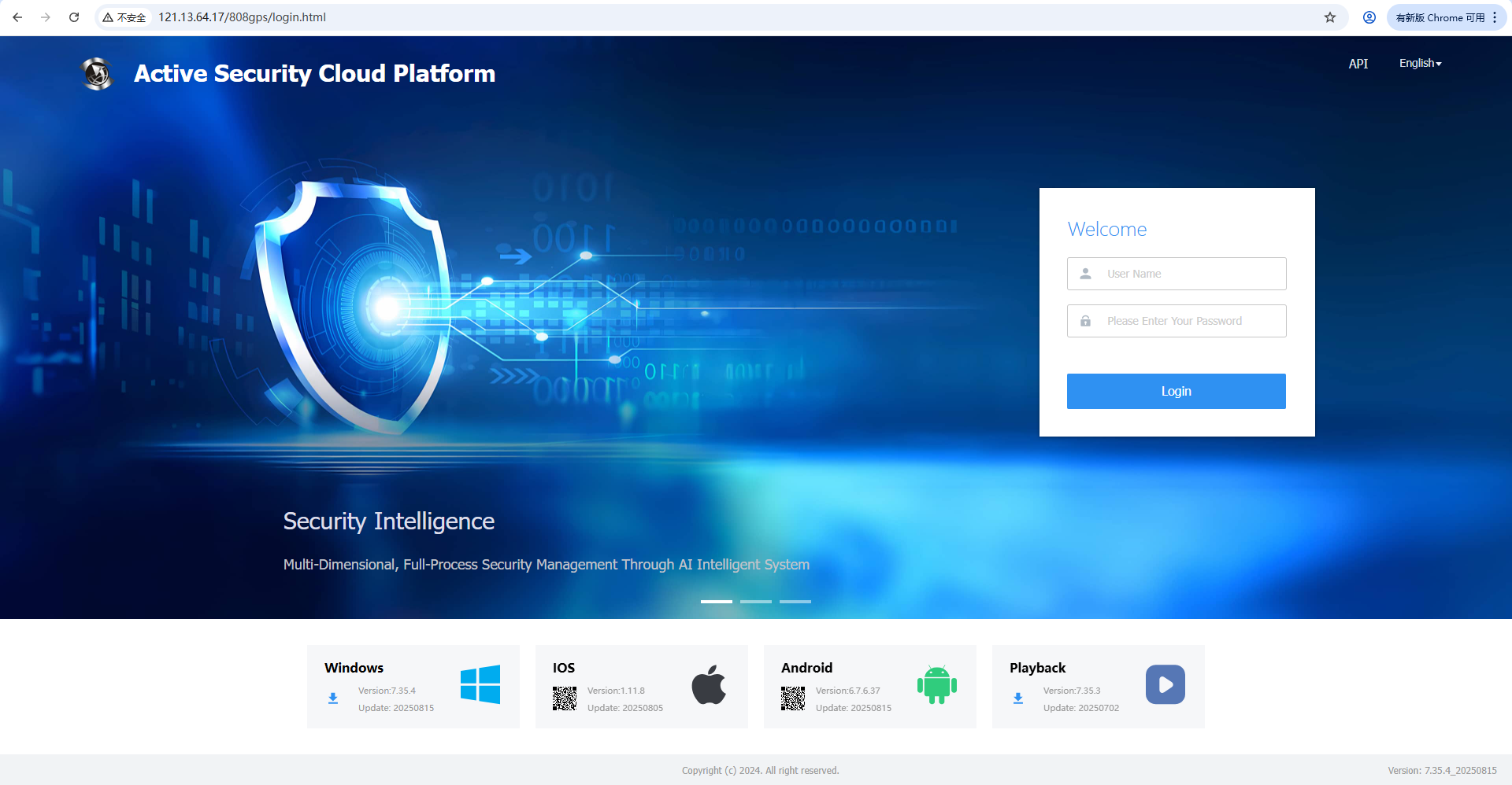 Open the following URL format in the browser address bar: http + Server IP + Web Port (e.g., http://121.13.64.17:80), then enter your account, password, and verification code to log in.