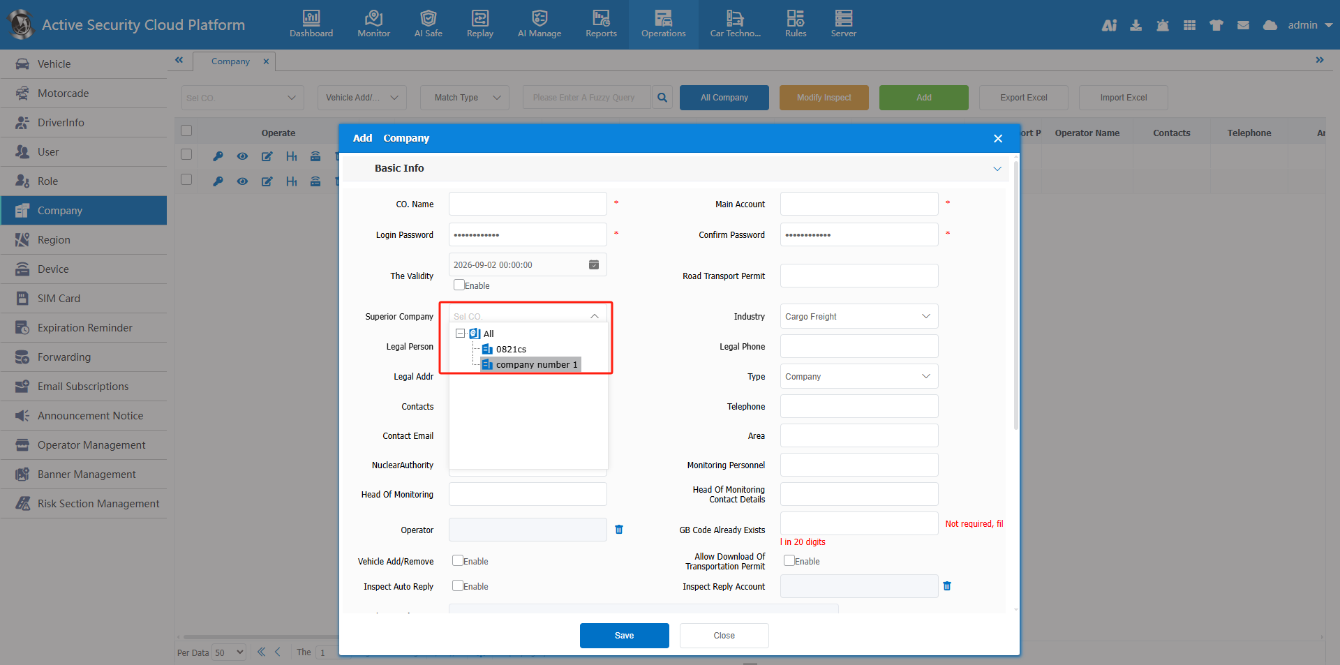 b. After creating a company, you can add sub-companies. When adding a sub-company, select its parent company from the dropdown list. If no parent company is selected, the new company will be created as a top-level company.